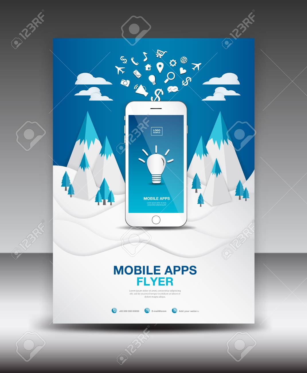 Mobile Apps Flyer Template On Winter Landscape Background Business